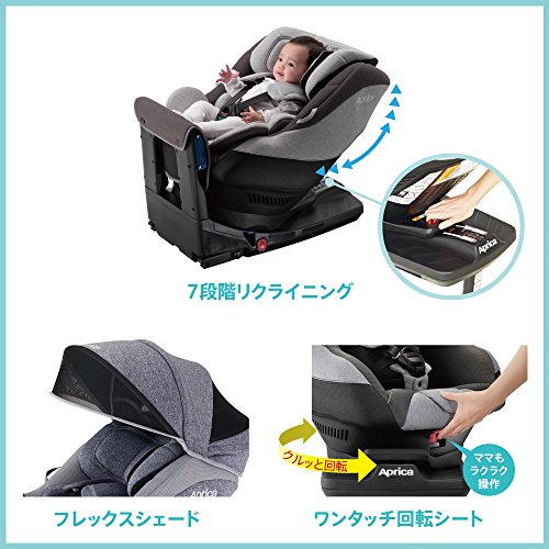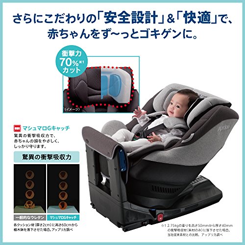 ●シートベルト固定はもちろんISOFIX固定にも対応しているので、より多くの車種への取り付けが可能です。●こだわりの「安全設計」と「快適」で新生児からず~っとゴキゲンに過ごせる回転式イス型チャイルドシートです。●衝撃吸収素材「マシュマロGキャッチ」や「肉厚まも~るクッション」でしっかり守ります。●ゆったり内角130度、足があがりすぎず自然な姿勢で首やおなかへの負担をやわらげます。●からだが大きくなっても、ゆったりサイズです。●大きくなったら足をのせられるフットステップで、姿勢が安定します。●サイズ:後向き時-W440×D713~765×H547~572(mm)、前向き時-W440×D651×H720~778(mm)●重量:14.8kg●対象年齢:体重2.5kg(新生児) から18kg(4歳頃)まで、身長の目安:50cm~100cm