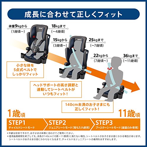 - 仕様期間の参考身長は75cm~140cmまで / 使用期間(体重)【チャイルドシートモード】5.3kg / 【ジュニアシートモード】5.0kg / 【ブースターシートモード】1.8kg