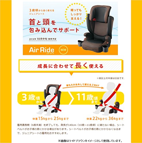 Aprica (アップリカ) エアライド ライドブラウンBR 軽量ジュニアシート 3歳頃からのロングユース仕様 (両サイドドリンクホルダー付) 93489