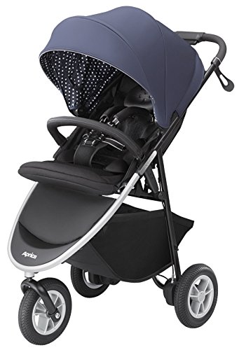Aprica (アップリカ) 3輪ハイシートベビーカー Smooove AC (スムーヴ) ネイビードットNV 【パンクレスタイヤ + シルキーエアー搭載 + 小回り段差スムーズ】 ※3年保証登録可
