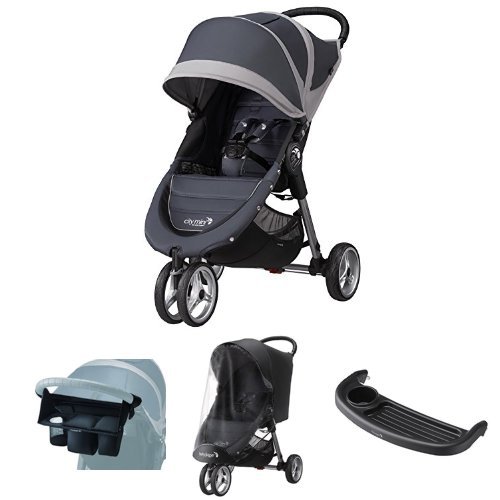 【セット買い】baby jogger(ベビージョガー) 3輪ベビーカー city mini (シティミニ) ネイビーブルー/グレイ BL+純正アクセサリー3点(ハンドルバー収納ポケット/レインカバー/チャイルドトレイ)