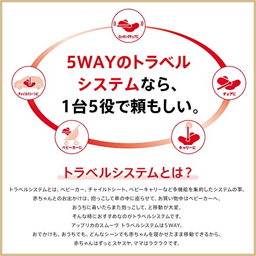 ●スムーヴTSインファントカーシート(別売)と組み合わせると5WAYで使用できるスムーヴ トラベルシステム。●赤ちゃんが寝たまま移動できるので、気軽にお出かけができます。また、3輪ベビーカーでありながら対面式で使用でき、さらにハイシートになり赤ちゃんとの距離も近くなります。●単体でも生後1カ月から3歳頃まで背面タイプの3輪ベビーカーとして使用できます。●空気入れ不要、パンクもしないタイヤを採用し、お手入れカンタン。路面からの振動も吸収して、小回りもきくので、ラクラク走行!●折りたたみもカンタンで、フロントロックをすれば、たたんだときのぐらつきを防ぐから安定感もあります。●おしゃれなフードと高級感のあるレザー調ハンドル・フロントガードを採用しているので、おしゃれにお出かけが楽しめます。●使用期間:生後1カ月~36カ月(体重15kg以下)●サイズ開:W550×D860×H1140mm、閉:W550×D420×H890mm重さ9.5kg●リクライニング角度120°~170°●製品安全協会A型SG合格品●付属品アタッチメント、マモールパッド