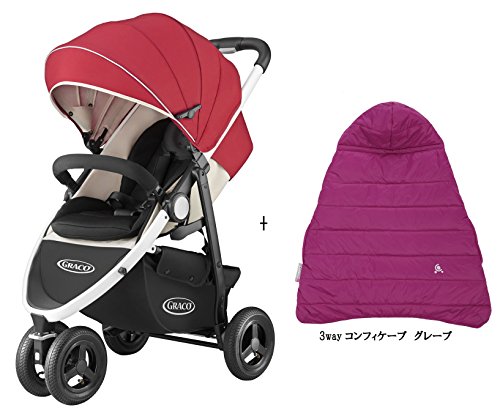 GRACO (グレコ) 3輪ベビーカー シティトレック レッドRD + 3wayコンフィケープ グレープ セット!