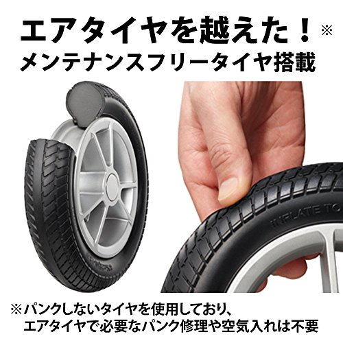 ・空気入れが不要で、パンクしない、メンテナンスフリータイヤを採用。