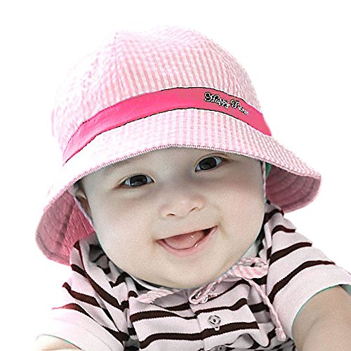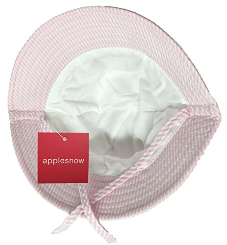 アップルスノー(applesnow) 赤ちゃんを日差しから守る ベビー 用 つば 付き ハット ボーダー 男女 兼用 帽子 男の子 女の子 (ピンク)