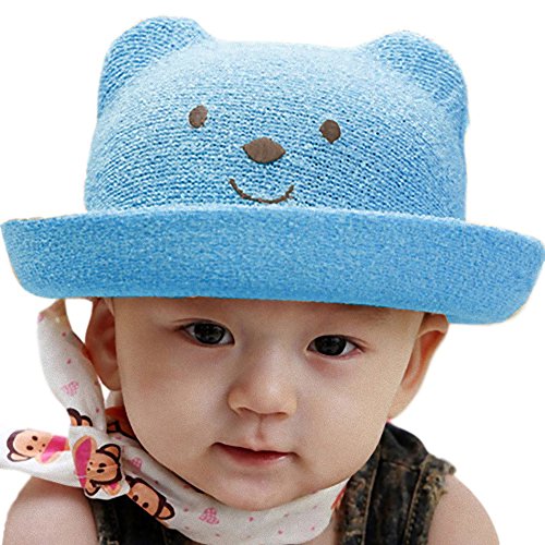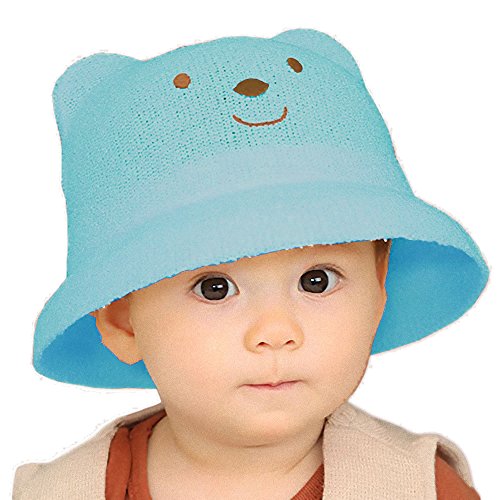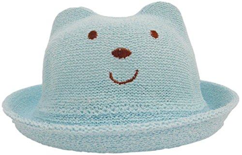 アップルスノー(applesnow) 赤ちゃんを日差しから守る ベビー 用 麦わら帽子 くま 耳 付き 男女 兼用 帽子 男の子 女の子 (頭囲52cmブルー)