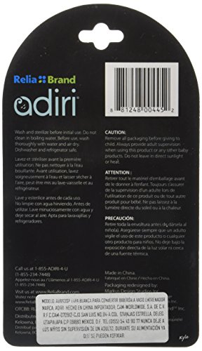 Smooth, off-center spout allows more comfortable feeding.;Design allows for use with all Adiri Nurser sizes (5.5 and 9.5 oz.).;Signature leak-proof valve makes life easier without worry of accidental spilling.;Distinct jet flow valves allow the child to determine the flow rate by their amount of suction.;BPA-Free.