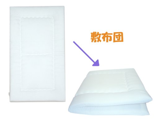 - [素材] 表地 綿100%、布団中芯側地:無蛍光・オフ白ブロード、掛布団中綿:ポリエステル(ウォシュロン)100%、敷布団中綿、巻綿(ウォシュロン)、固綿(ポリエステル100%)