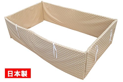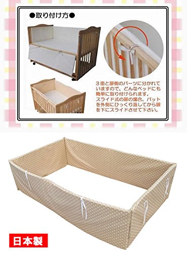 ベビーベッド用サイドパットL全周リボン付 日本製(ドットブラウン)