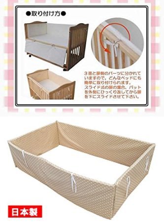 日本製 ベビーベッドガード全周タイプ ドットブラウン 冷暖房の風から赤ちゃんをガード
