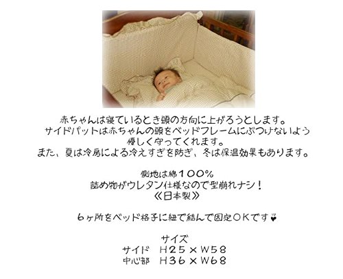 - (赤ちゃんは頭の方に上がろうとしますので、サイドパットはフレームに頭をぶつけないようにやさしく守ります。寝返りするようになった際にも重宝します。