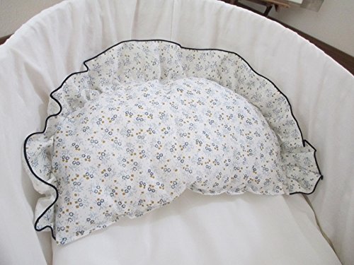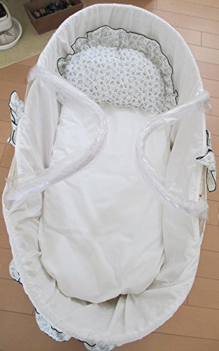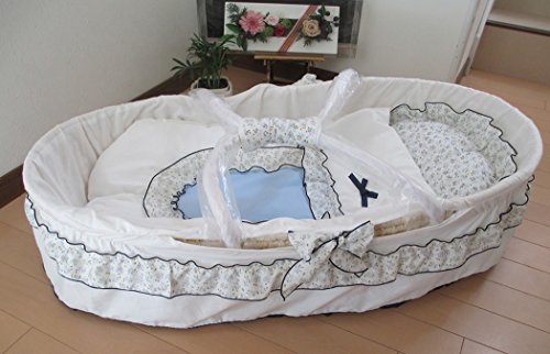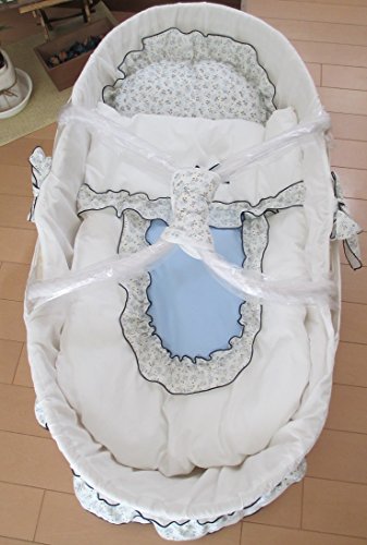 赤ちゃんのお出かけに便利なお手軽価格のキャリークーハンです。 かご以外の生地、お布団類は日本製で丸洗いが出来ます。 やさしいブルーの花柄がとってもシンプルでこの夏を涼しく過ごす事が出来たらと思います、シンプルで飽きが来ないデザインですので、男女どちらの赤ちゃんにも使っていただけると思います。 篭の本体は、自然素材のとうもろこしの葉を手編みしたものです。 寸法;W850×D500×H300mm