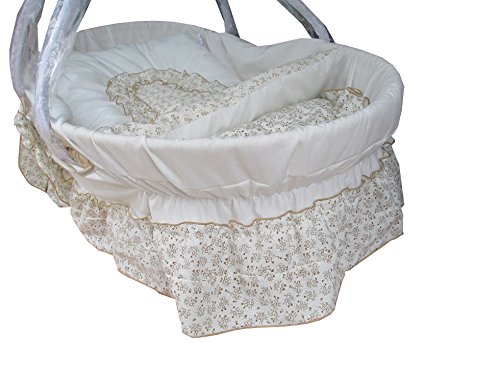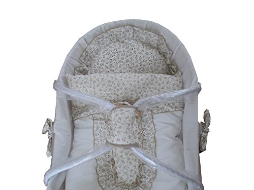 赤ちゃんといつも一緒。おうちの中でも、お出かけに便利なお手軽価格のキャリークーハンです。 かご以外の生地、お布団類は日本製で丸洗いが出来ます。 やさしいブルーの花柄がとってもシンプルでこの夏を涼しく過ごす事が出来たらと思います、シンプルで飽きが来ないデザインですので、男女どちらの赤ちゃんにも使っていただけると思います。 篭の本体は、自然素材のとうもろこしの葉を手編みしたものです。 寸法;W850×D500×H300mm
