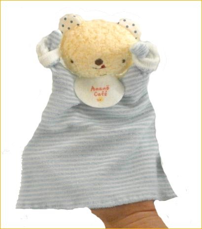 アナノカフェ(穴原 里英)の指人形、パペット、ぬいぐるみ、ベビー用品出産祝いやギフトにもどうぞ (ブルー)