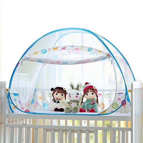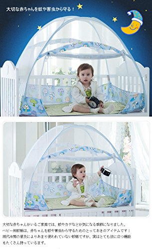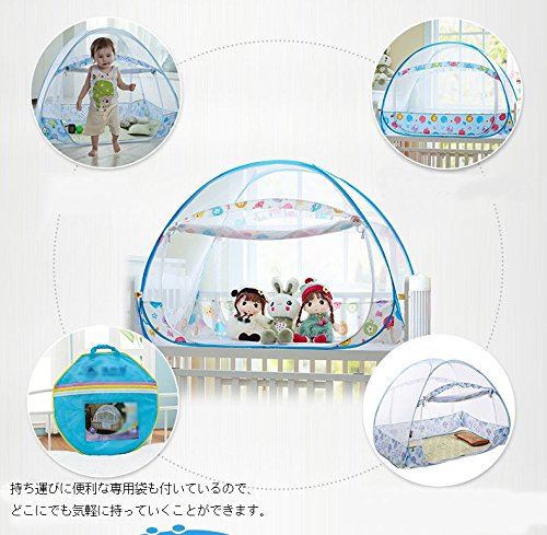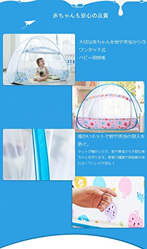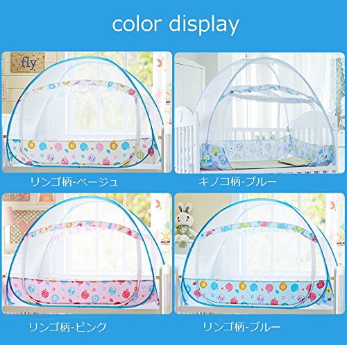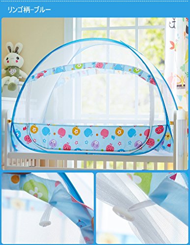 蚊帳 ベビー 赤ちゃん ワンタッチ式蚊帳 ムカデ対策 簡単設置 簡単収納 子供用ワンタッチ蚊帳 キッズ コンパクト/収納 折りたたみ (105*60*80cm, リンゴ柄-ブルー)