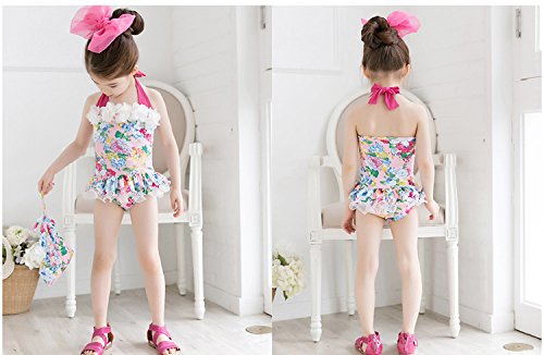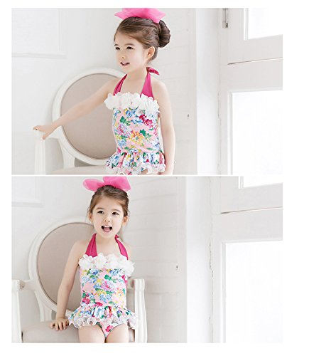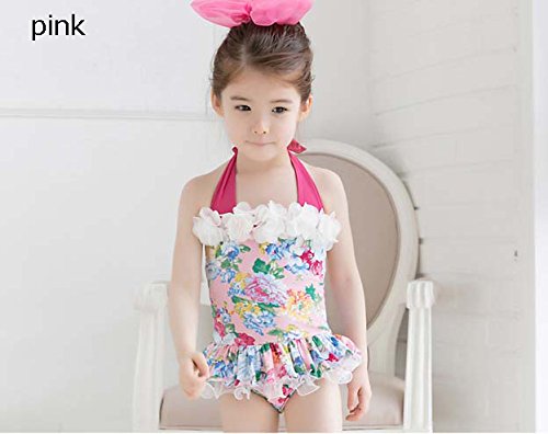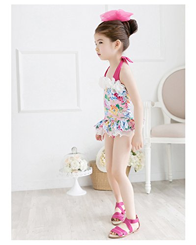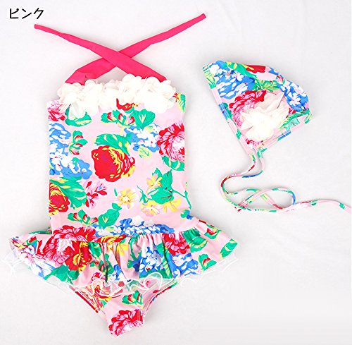 アニメ専線 可愛いワンピース 花柄 子供水着 キャップ付 (ピンク, Mサイズ(身長:80-90cm))