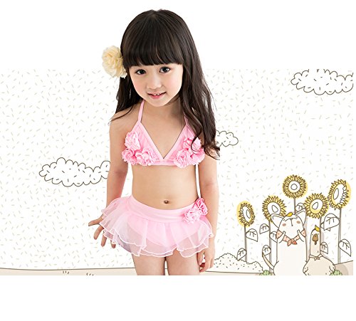ビキニ 女の子 キッズ水着 子供水着 女の子 女児 ガールズ ミズギ スイミング スクール水着 スイムウエア 三点セット UVカット キャップ付 アニメ専線 (LLLサイズ(身長:130-140cm), ブルー)