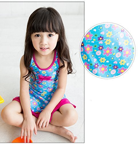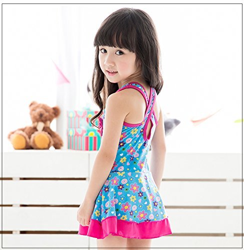 女の子 水着 ワンピース 花柄 子供水着 女児 ガールズ ミズギ スイミング スクール水着 スイミングウェア UVカット 4色 ワンピース+パンツ+キャップ 三点セット アニメ専線 (Sサイズ, D)