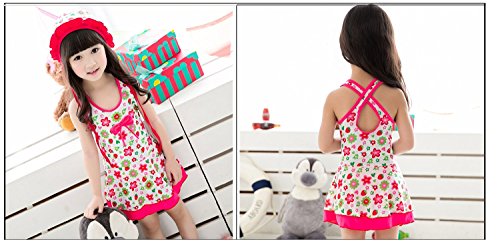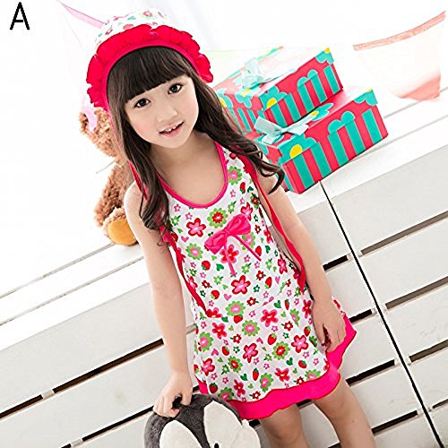 女の子 水着 ワンピース 花柄 子供水着 女児 ガールズ ミズギ スイミング スクール水着 スイミングウェア UVカット 4色 ワンピース+パンツ+キャップ 三点セット アニメ専線 (LLサイズ, A)