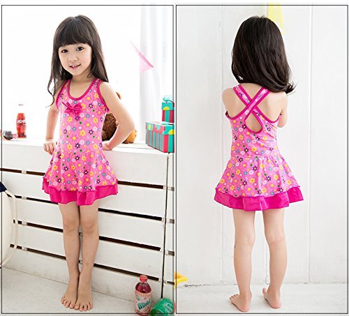 女の子 水着 ワンピース 花柄 子供水着 女児 ガールズ ミズギ スイミング スクール水着 スイミングウェア UVカット 4色 ワンピース+パンツ+キャップ 三点セット アニメ専線 (LLサイズ, C)