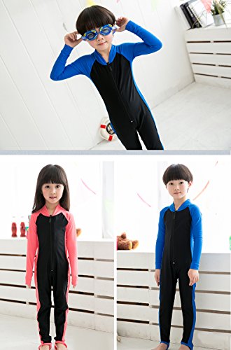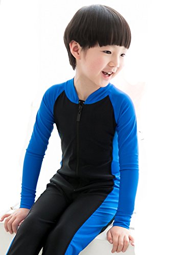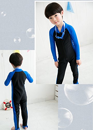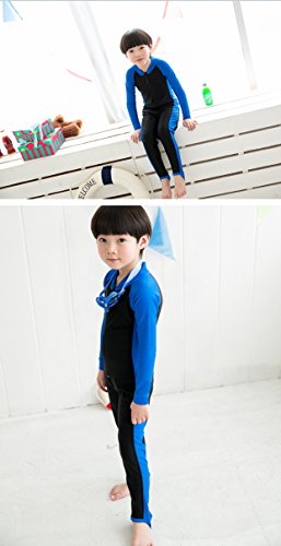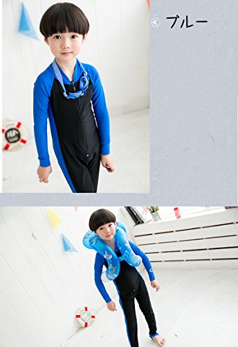 男の子/女の子 キッズ水着 長袖 フルスーツ ダイビング 子供水着 スクール水着 スイムウエア 日焼け防止 UVカット アニメ専線 (LLLサイズ, ブルー)