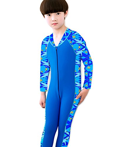 男の子/女の子 キッズ水着 長袖 フルスーツ ダイビング 子供水着 スクール水着 スイムウエア 日焼け防止 UVカット アニメ専線 (Mサイズ, ブルー)