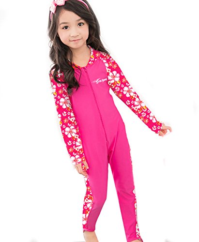 男の子/女の子 キッズ水着 長袖 フルスーツ ダイビング 子供水着 スクール水着 スイムウエア 日焼け防止 UVカット アニメ専線 (LLLLLサイズ, ローズレッド)
