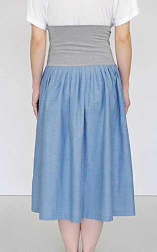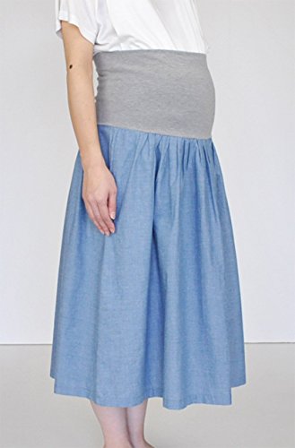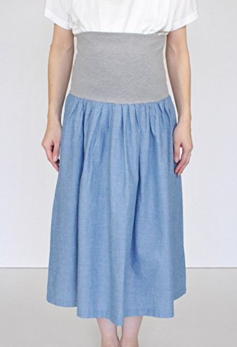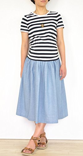 アビックス アルゴヴィア マタニティミモレ丈スカート M ライトブルー シャンブレー 365336