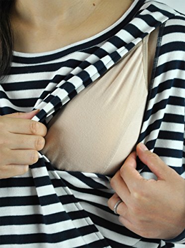 アルゴヴィア ボーダースリット産後授乳服 L 杢グレー×オフ スムース 346108