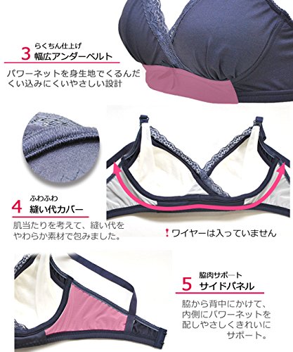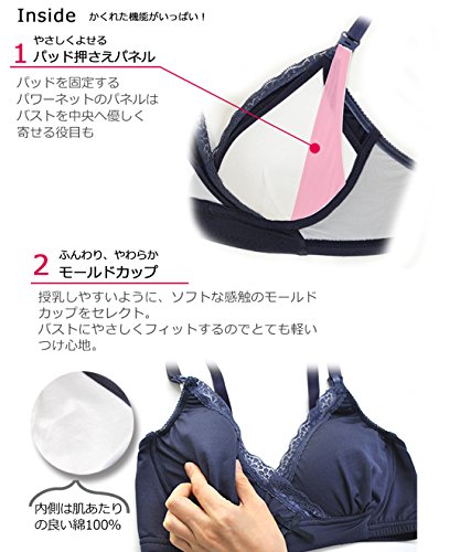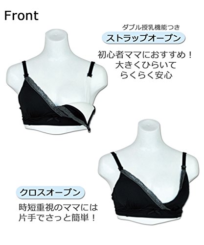 - 授乳機能:クロス&ストラップのダブルオープン、らくちんフロントベルト、サポートパッド押さえパネル、脇高サイドサポートパネル、ソフトモールドカップ、4段階調節ホック、ストラップ調節可能、ワイヤーなし