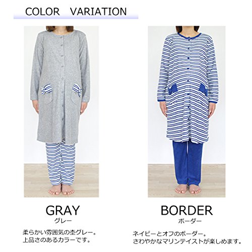 アビックス マミールナ マタニティパジャマ長袖 授乳便利仕様 M-L ボーダーネイビー パイル 378435