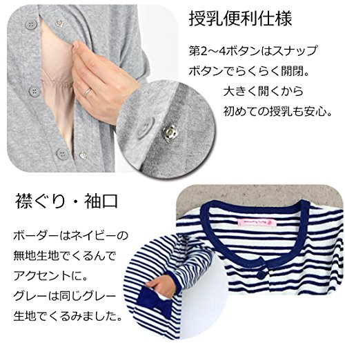 • トップス:第2~4ボタン裏スナップ使いの授乳便利仕様、ボトム:ウエストゴム調節