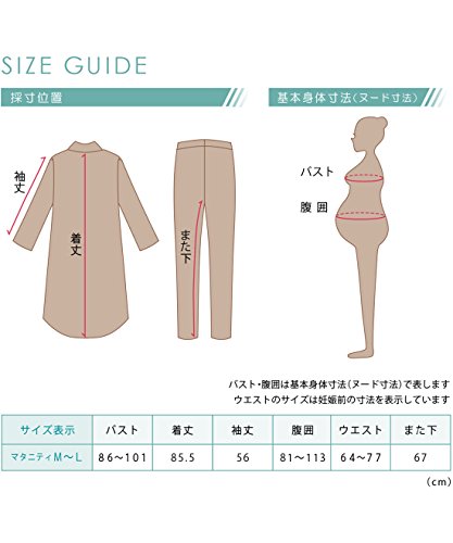 • M~L(トップス/バスト86~101cm・着丈85.5cm・袖丈56cm、ボトム/腹囲81~113cm・股下67cm)