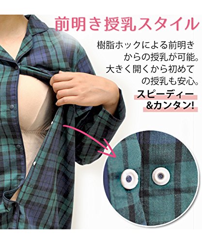 アビックス マミールナ らくちん前開きパジャマ M-L グリーン 先染めチェック 877480