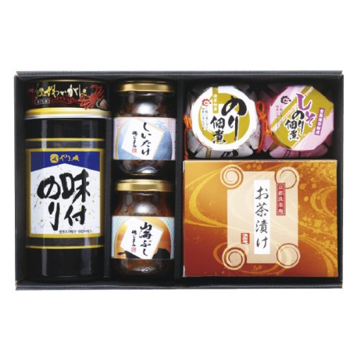 島乃香のり佃煮80g・島乃香しそのり80g・磯じまん山海ぶし90g・磯じまんしいたけ85g各1瓶・京都洙樂庵お茶漬けの素(宇治抹茶味・だししょう油味各5.3g×2袋)1箱・やま磯卓上味付のり(8切44枚)1個(PET容器入)・宝幸紅ずわいがにほぐし身55g×1缶・賞味期間/製造日より常温約450日・[日本製]・【乳・小麦・えび・かに・さば・大豆・鶏肉・りんご】