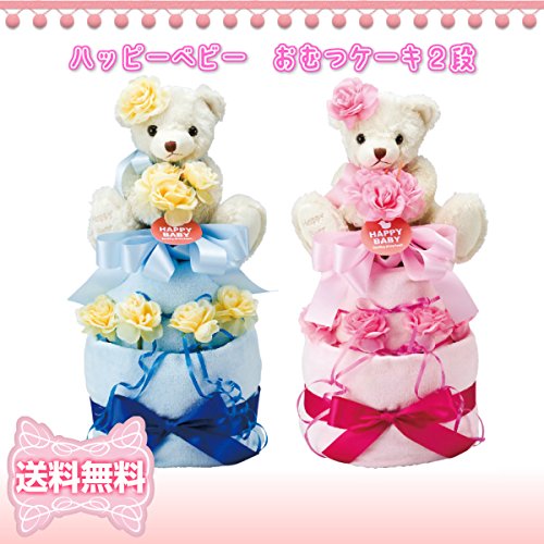 ハッピーベビー おむつケーキ2段ブル―