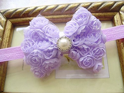 リボン型のとってもキュートなヘアバンド。リボンはシフォンのローズとレースでできています。 中央にパール、そしてパールの周りにはダイアモンド!(もちろん偽物ですが)
