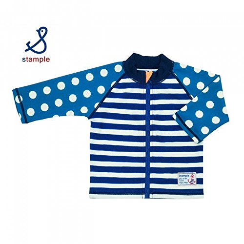 stample【スタンプル】 ドット/ボーダー 8分袖 ラッシュガード 水着(ブルー)100cm