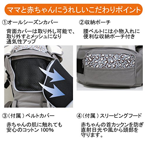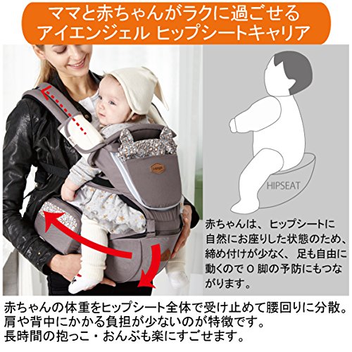 i-angel アイエンジェル ヒップシートキャリア 抱っこ紐 アニマルセピアグレイ 落下防止安全ベルト付(ベルトカバー・前向き抱っこ用カバー付属) 【SG認証/メーカー保証・日本語説明書付】