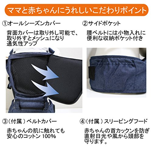 i-angel アイエンジェル ヒップシートキャリア 抱っこ紐 デニムソリッド 落下防止安全ベルト付(ベルトカバー付属) 【SG認証/メーカー保証・日本語説明書付】
