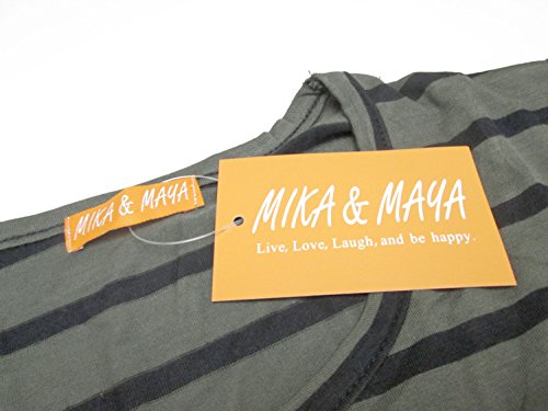 【MIKA&MAYA】 Tシャツ 半袖 マタニティ ボーダー 授乳口 カットソー 授乳服 レディース (L, カーキ ボーダー)