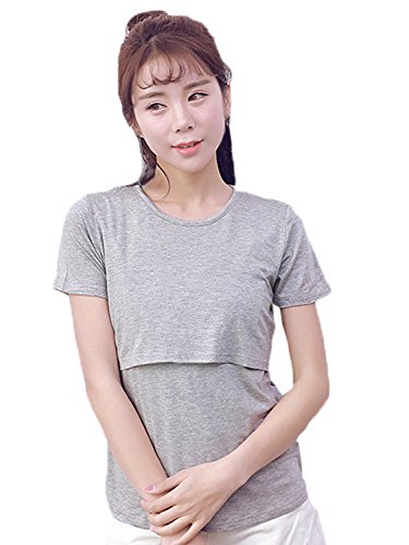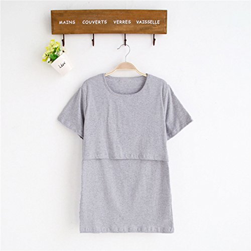 【MIKA&MAYA】 マタニティ Tシャツ 半袖 授乳口 トップス 授乳服 シンプル レディース (L, グレー)