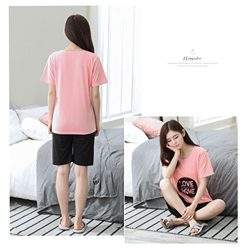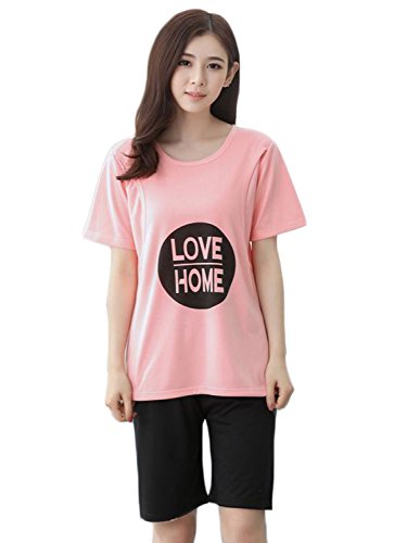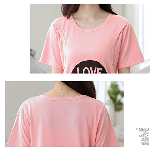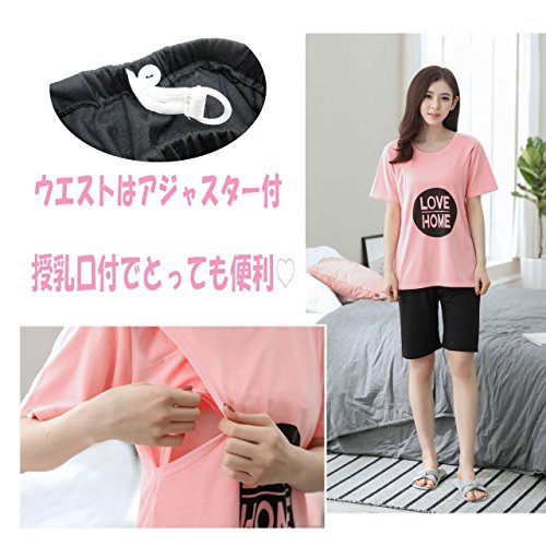 【MIKA&MAYA】 マタニティ 授乳口 パジャマ 半袖 上下セット ルームウェア レディース (L, ピンク)