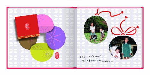 七五三の写真を開くと、お祈りした内容や、パパとママからのお守りが入っている・・・アルバムブックで思い出をかけがえのないものに。従来のアルバムスタイルのまま、エピソードやメッセージが書き込めるストーリー仕立てになっています。とはいえ、単純に文字を書き込んだり、写真を貼ったりするだけではつまらないので、色々な形に切り抜かれたページを写真枠にしたり、重ねたページに穴開けしたりと、思わずにやけてしまう仕掛けが満載!【特長】・七五三といえば写真館で撮るアルバムが主流ですが、 アルバムブックなら七五三のいわれや祈願のことば/ご両親のメッセージが、 写真と共に残せます。・プリント写真をご自身で貼る従来のアルバムスタイルなので、手軽に簡単に作れます。・お守りを、おじいちゃんおばあちゃんへのメッセージにして贈ってあげても。・七五三の由来がストーリーになっています。・写真は14〜16枚入ります。