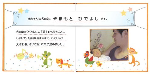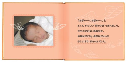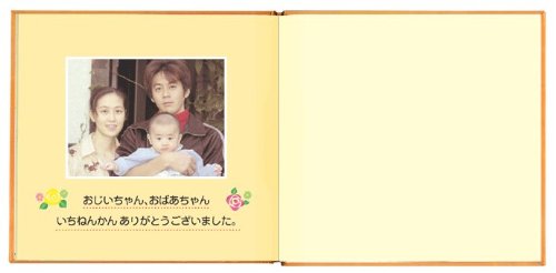 お仕立券なので、つくりかたはとっても簡単。 写真をそろえて、コメントを入れていくだけ。 ステキなバースディブックがおつくりできるお仕立て券です。 アルバム絵本はお仕立券をお送りしますので、必要事項をご記入の上返送してください。約3週間程でお届けいたします。 「お仕立券」同封の注文用紙一式 ・コメントなどをご記入いただくお申込み用紙> ・説明書 ・写真指示のためのシール (どのページにどの写真を入れるか分かるように、写真に貼っていただくシールです) ◆ 商品詳細 ◆商品名アルバム絵本「ハッピーバースデー」 製本サイズ閉じた状態17.7cm×よこ 18.7cm×厚さ 0.8cm16ページ(オールカラー)オレンジ写真点数10点ページの中身 お名前と作者名が入ります。 生まれてからお誕生日までのストーリー。 生まれた日時が入ります。 身長・体重・生まれたときの様子。 お名前の由来です。大きくなったときに聞かれますよ。 横の写真でもOK! その際、両端が切られますので注意! 左にページは、手書きでコメントを自由に入れられます。 手書きでコメントを入れられます。 ケーキには、歳の数だけローソクが立ちます。 (11本まで)