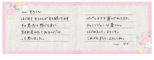 - メッセージや命名、誕生日なども残せるページ付き。母子手帳と一緒に残せるコンパクトなサイズです。
