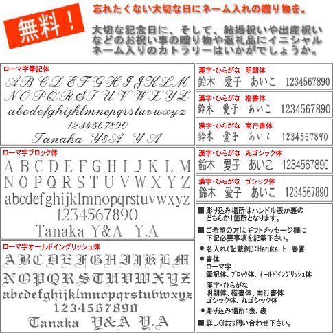 - 名入れ彫り込みご希望の方はギフトメッセージ欄に詳細を記載ください。