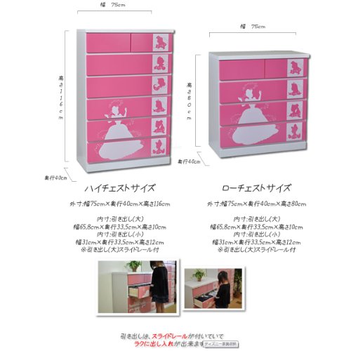Disney家具 ハイチェスト 75-6シルエットプリンセス
