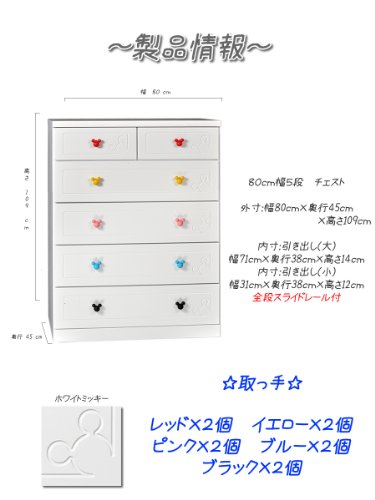 Disney家具 ハイチェスト 80-5セレクトミッキーWH