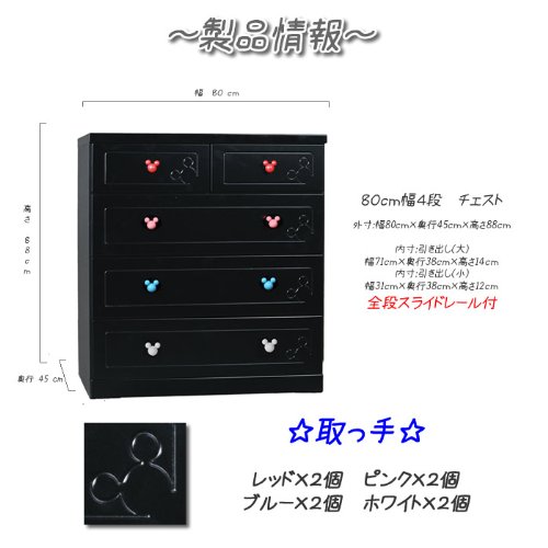 Disney家具 ローチェスト 80-4セレクトミッキーBK